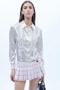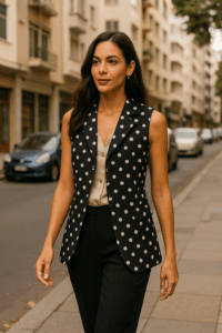 Quando olhamos para uma peça com poá, estamos olhando para um padrão que ocupa o espaço — e o organiza. Isso pode ser profundamente harmônico ou absolutamente caótico, dependendo da forma como interage com o corpo e com o contraste pessoal.